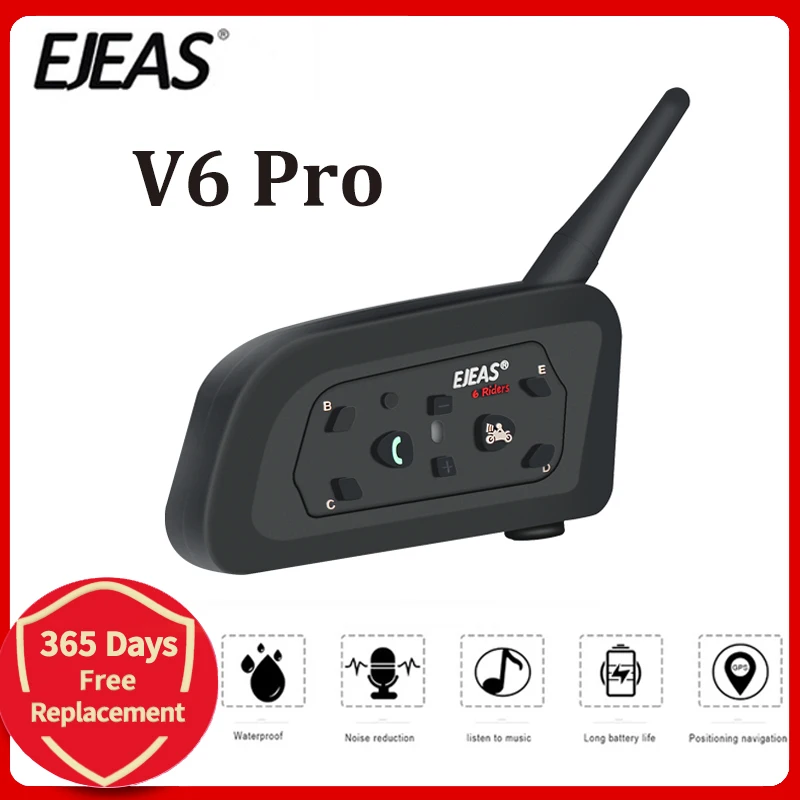 Best Motorcycle Accessories & Parts from EAuto Store for Headset Helmet-Intercom Interphone Bluetooth Motorcycle-Bt-Communicator Ejeas V6 6-Riders